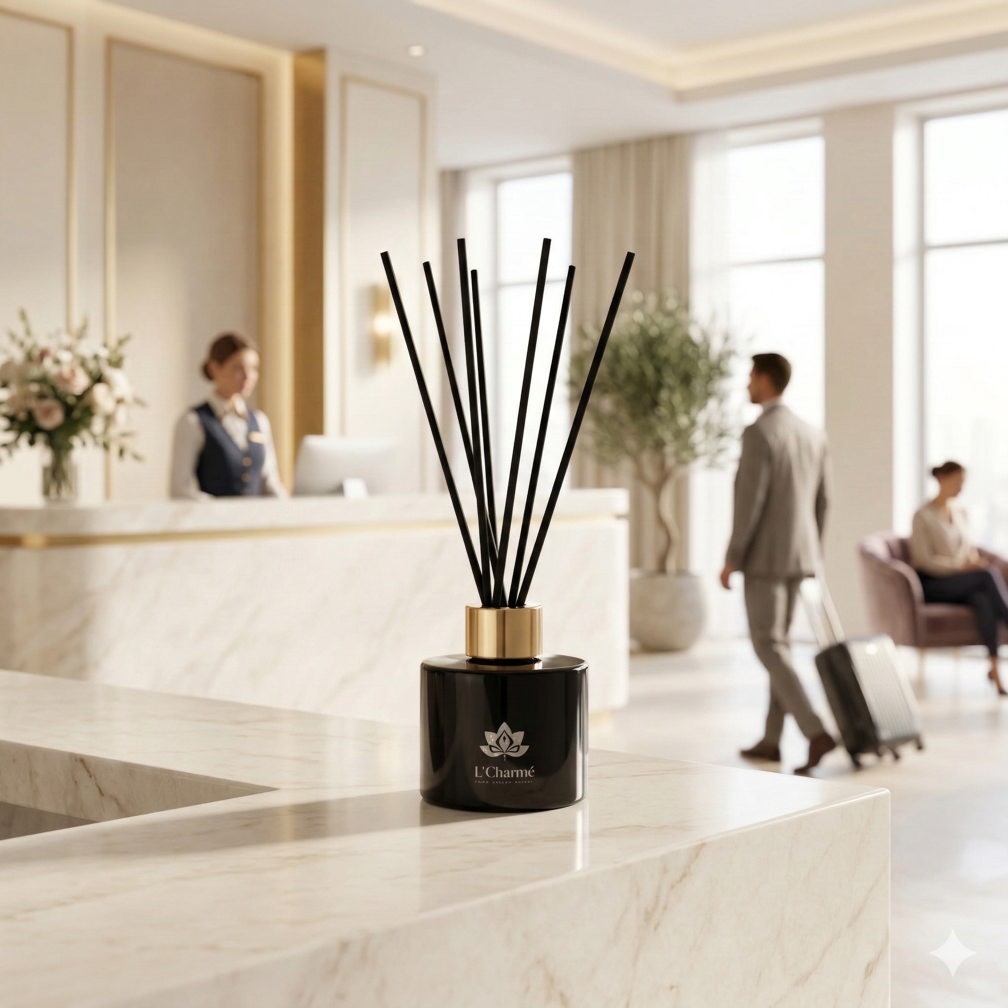 Ja. Auf Wunsch personalisieren wir Kerzen und Diffusoren mit Lasergravur (Logo oder Wunschtext). Dazu bieten wir Grußkarten und L’Charmé Geschenkkarten – ideal als stilvolles Willkommens- oder VIP-Geschenk.